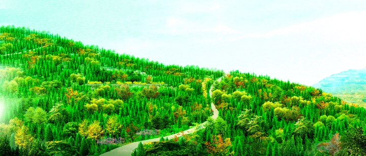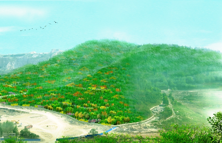 工程規(guī)模:該工程位于高新區(qū)孫村立交東南,在建蓮花山殯儀館西側(cè)。主要包括殯儀館西側(cè)荒山、采石跡地,總綠化面積約172.6畝。